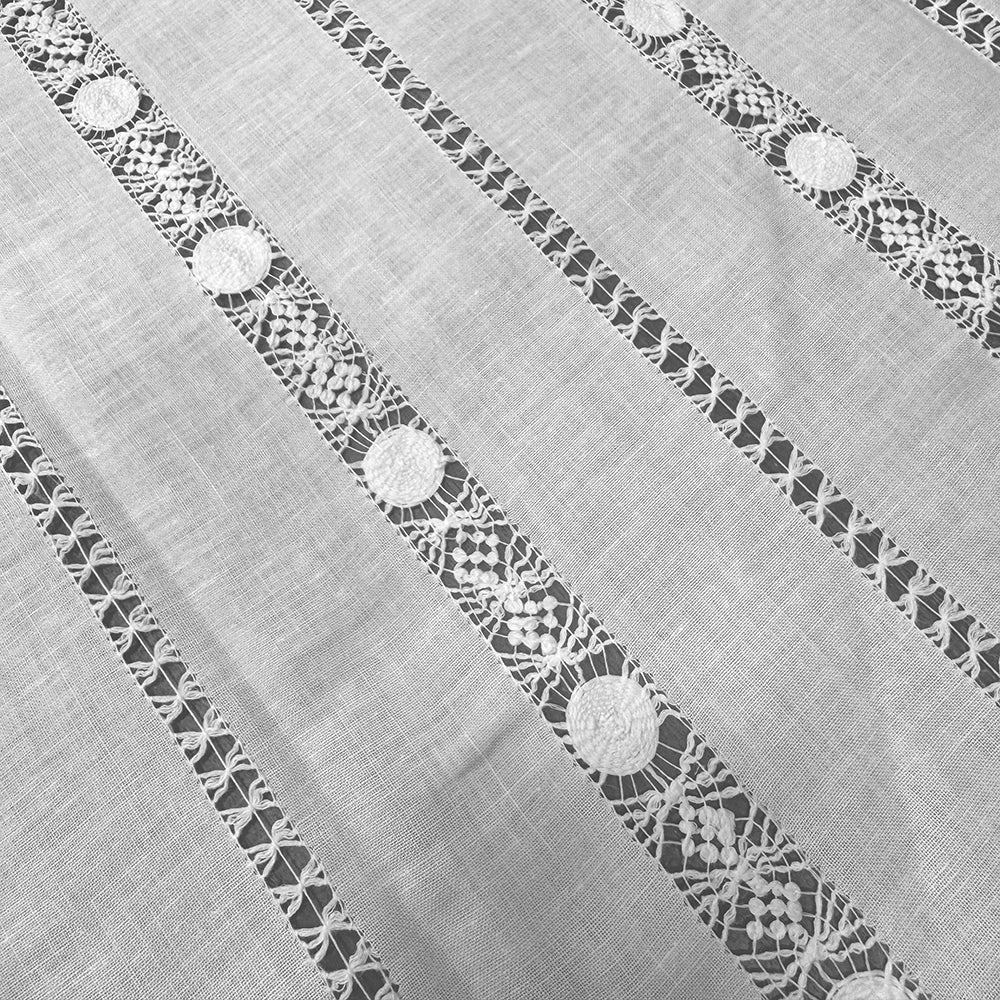 - Tejido de hilo y algodón 100% en blanco, ligero y de opacidad media.